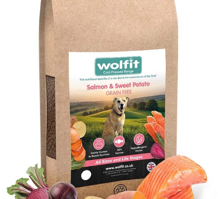 Composition: Salmon (36%), sweet potato (27%), potato (20%), salmon protein
