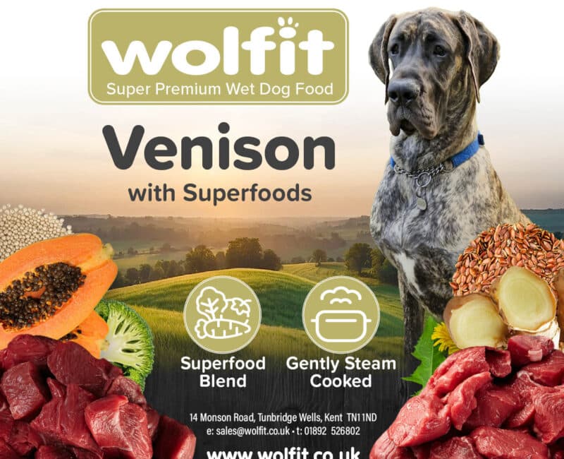 55% Venison, 30.7% Broth, 3% Papaya, 3% Broccoli, 3% Amaranth, 2% Black Currant, 1% Dandelion, Minerals, 0.2% Linseed Oil, 0.1% Ginger.